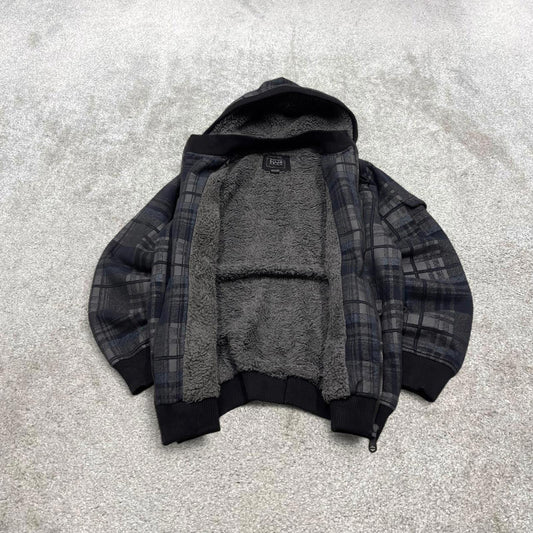 00s Billabong hooded jacket checkered XXL men's y2k style sherpa check winter coat