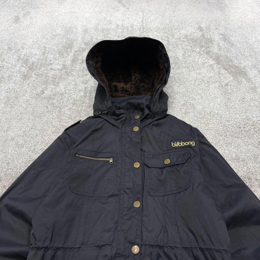 00s Billabong technical parka jacket S women's y2k style black hooded coat winter