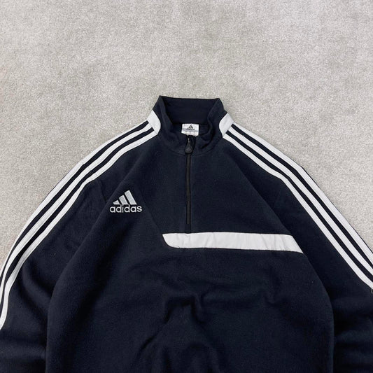 00s Adidas technical fleece Small Black 1/4 zip pull over y2k style autumn lightweight striped