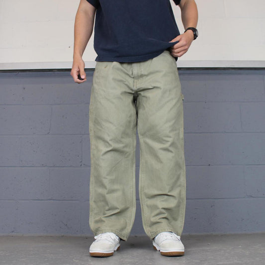 002 baggy carpenter pants W40L30 khaki casual cargo trousers Blue Mountain workwear