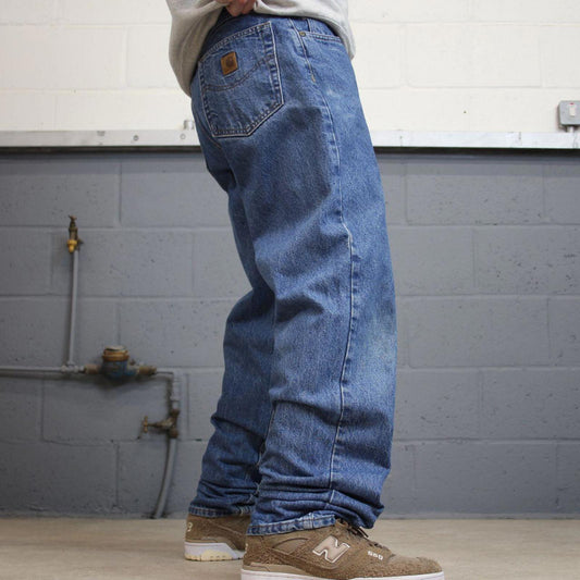 Blue Denim Carhartt jeans W38L32 90s style relaxed skater loose 5 pocket jeans