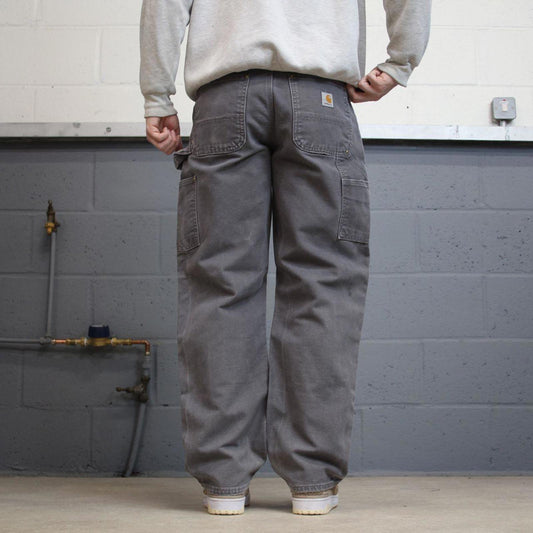 Carhartt double knee carpenter jeans grey canvas W32L30 90s style thick loose leg cargos