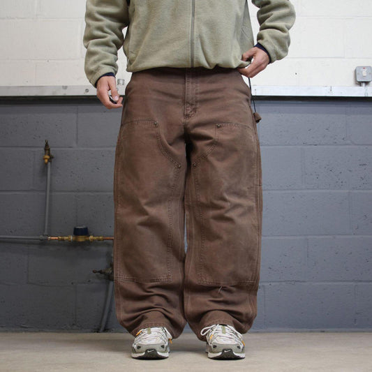Carhartt double knee carpenter jeans brown canvas W38L30 90s style thick loose leg cargos