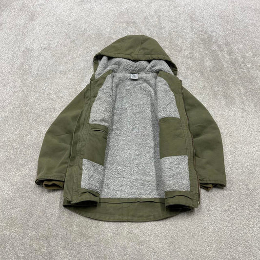 Green Carhartt Detroit jacket XXL J97 MOS boxy cropped blanket lined brown collar canvas workwear