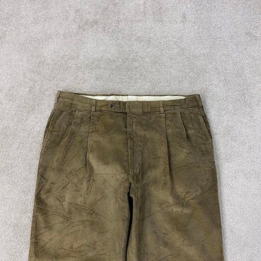 Vintage Berle khaki wide wale corduroy trousers W38L32 pleated baggy cord pants 90s skate style
