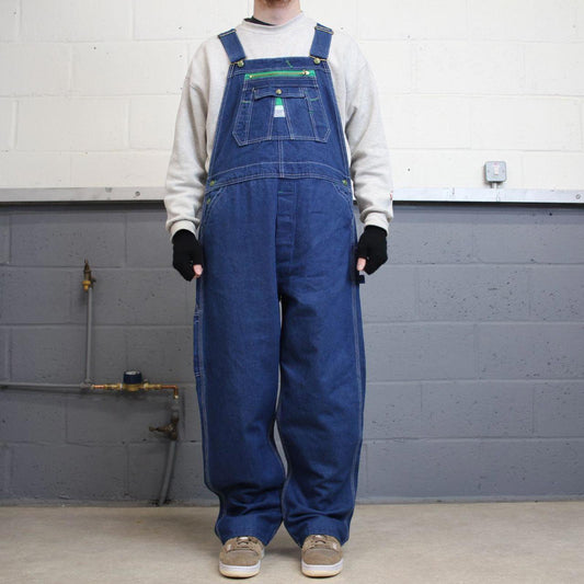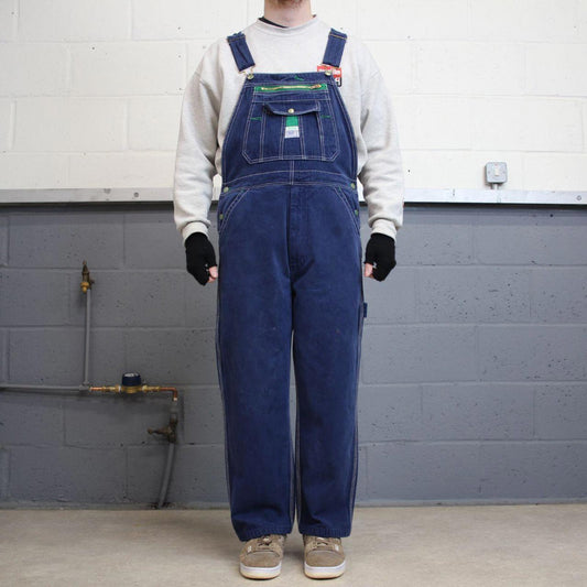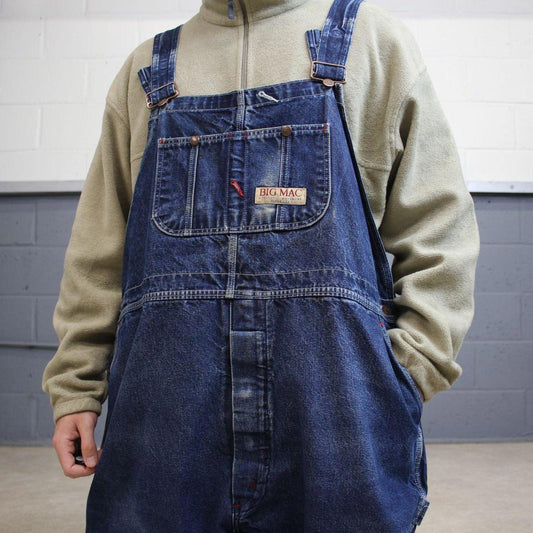 Vintage 90s denim dungarees overalls W52L28 blue Big Mac mens loose bib and brace workwear