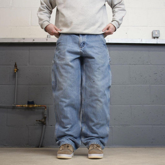 Vintage baggy Carhartt carpenter jeans W34L32 Mens blue loose y2k style thick denim cargos trousers
