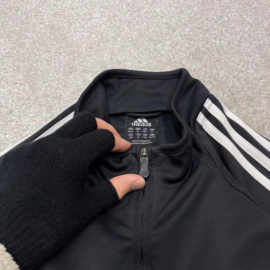 Vintage Adidas track jacket black Large men's y2k 00s style black funky sports tracksuit