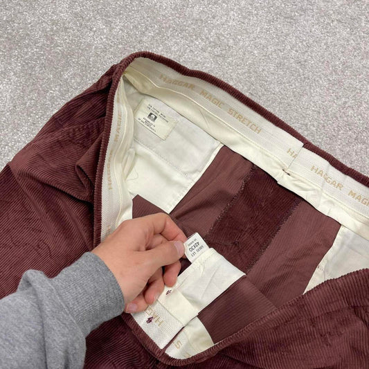 Vintage baggy corduroy trousers wide wale burgundy Haggar W40L30 loose jumbo cord pants 90s skate