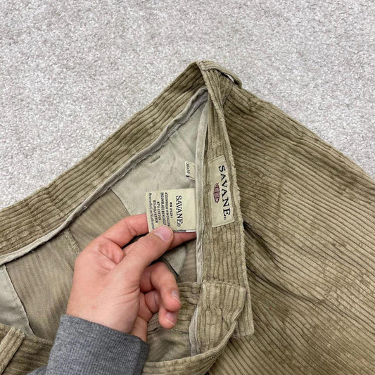 Vintage baggy pleated corduroy trousers beige wide wale savane W36L27 jumbo cord pants 90s skate