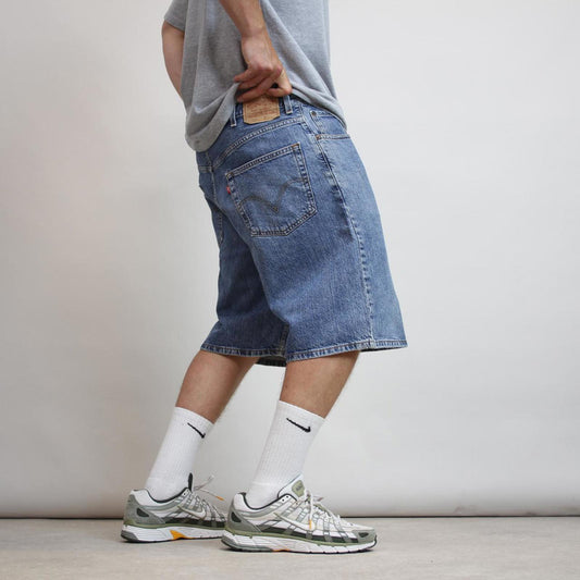 Vintage baggy Levi's 550 denim jean shorts W38 waist patch red tab logo
