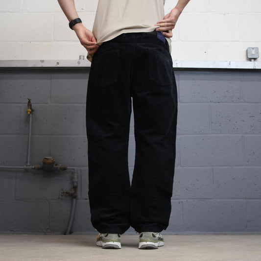 Vintage baggy corduroy trousers wide wale black Blue Harbour M&S W36L29 loose jumbo cord pants 90s