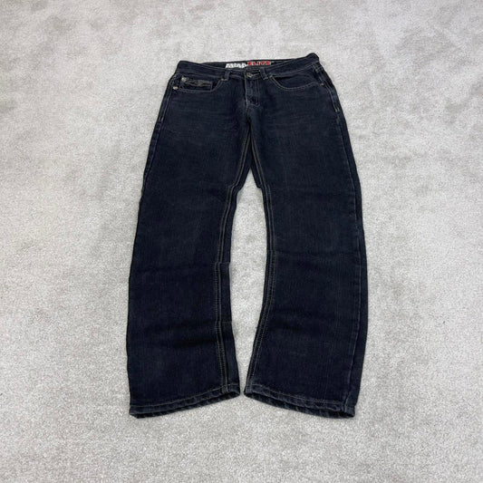 Black MMA Elite jeans W30L30 slim straight y2k 00s style jeans embroidered stitch detail
