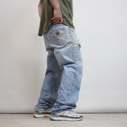 Vintage Carhartt jeans W38L34 Loose Fit Classic Blue Thrashed Workwear