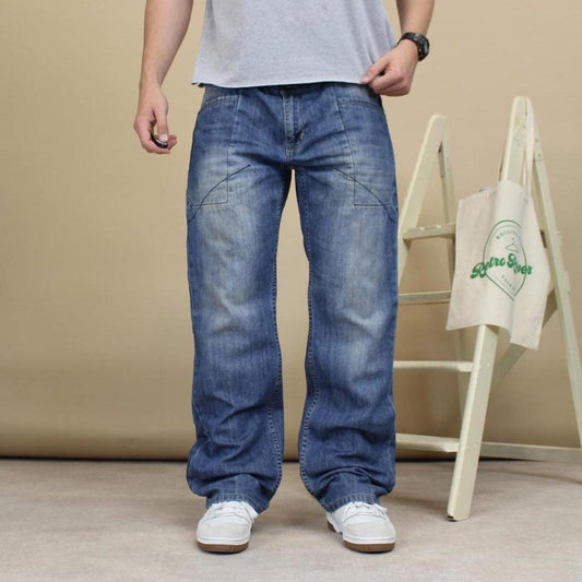 Blue embroidered Premium jeans W36L32 y2k style loose denim pants