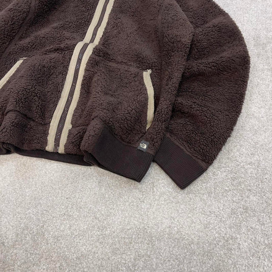 North Face high pile technical fleece hoodie XL women's brown full zip y2k teddy bear style autumn