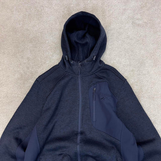 Navy Reebok technical fleece Large y2k style hooded full zip embroidered logo hoodie