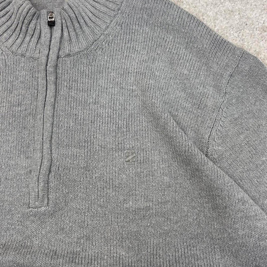 Grey IZOD chunky knit quarter zip pullover jumper XL embroidered logo 1/4 zip sweater y2k style