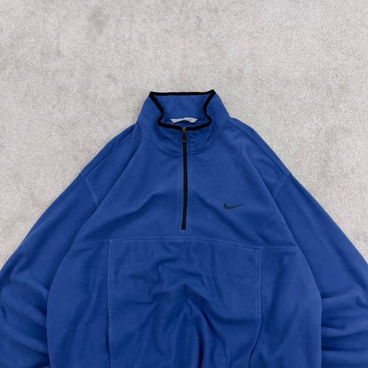 Blue Nike quarter zip technical pullover fleece XXL embroidered swoosh logo autumn y2k style