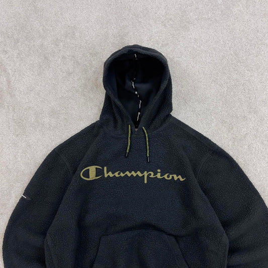 Black Champion technical fleece hoodie Medium Women's cropped y2k style autumn pull over