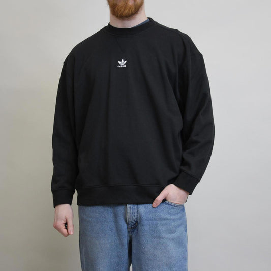 Black Adidas sweatshirt, size 14 loose pullover y2k boxy fit embroidered logo jumper