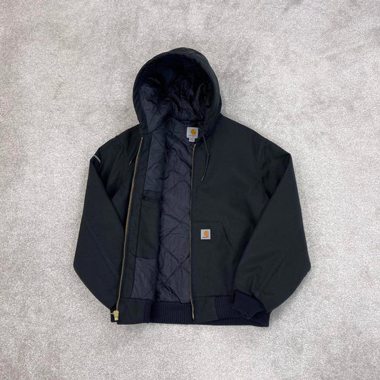 Vintage Black Carhartt hooded active jacket XL 90s style skater canvas bomber J131 BLK