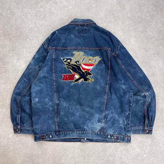 Embroidered Paco USA denim jacket XL Baggy denim hip hop jacket in navy blue