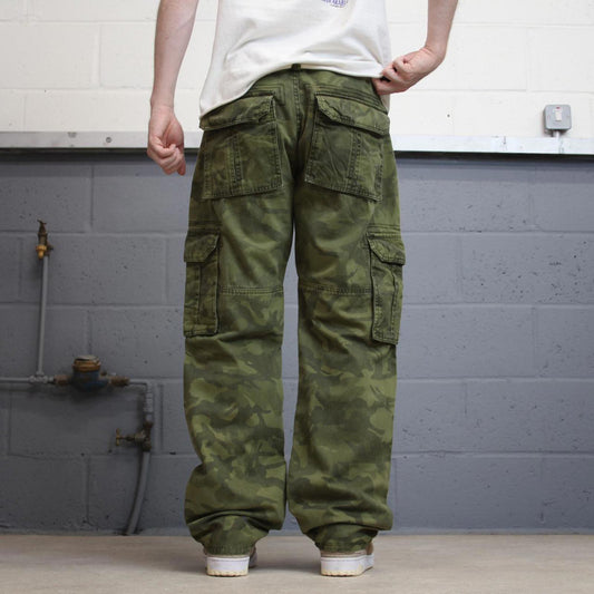 Baggy camo Halifax cargo pants W36L33 Khaki Green forest camouflage loose y2k style cargos