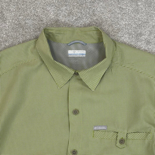 Green checkered Columbia technical shirt XL men's short sleeve button up autumn y2k style