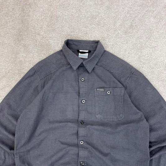 Grey checkered Columbia technical shirt Medium men's long sleeve button up autumn y2k style