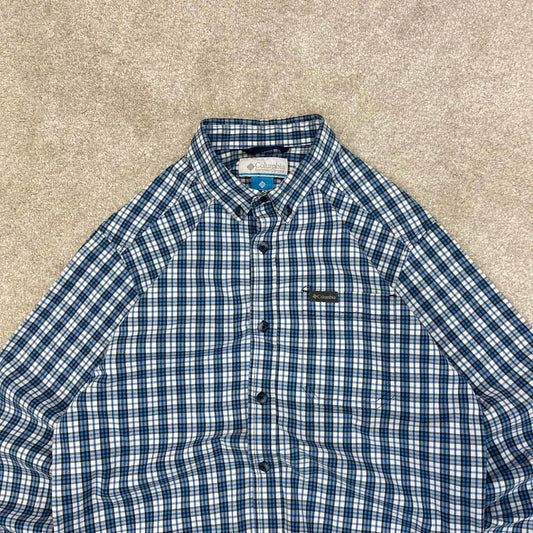 Blue checkered Columbia technical shirt Medium women's long sleeve button up autumn y2k style