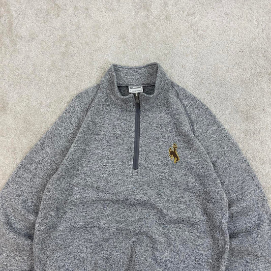 Grey Champion technical fleece Small 1/4 zip up pull over y2k autumn knit style rodeo embroidered