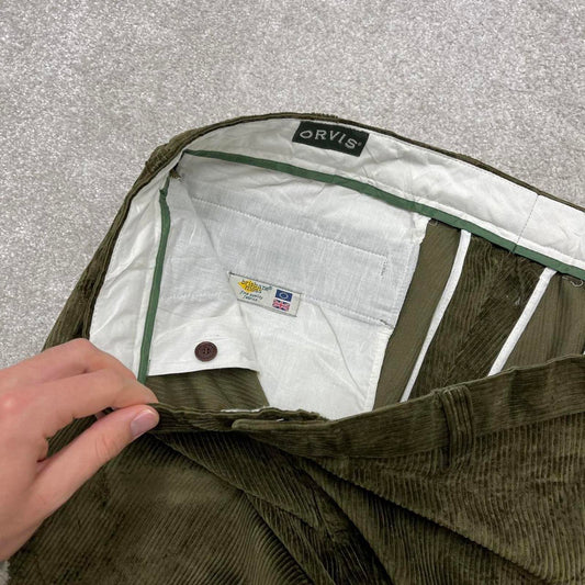Baggy Orvis corduroy pants W40L31 green wide wale jumbo cord trousers 90s skater style