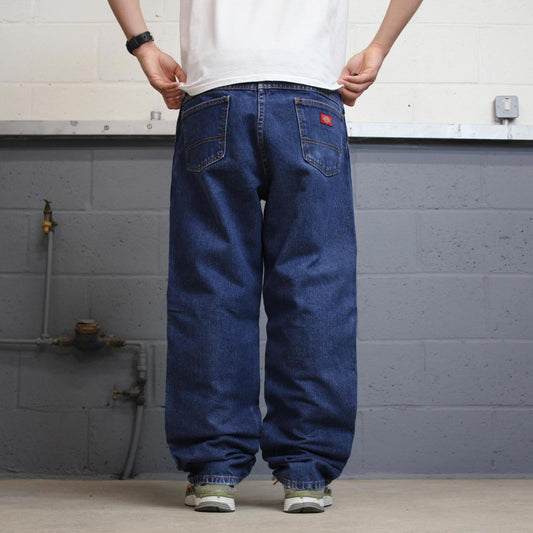 Baggy Dickies jeans W38L32 loose blue denim vintage 90s skater style workwear 5 pocket pants patch