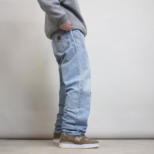 Blue Carhartt jeans W38L30 vintage 90s style skater relaxed fit flannel lined pants