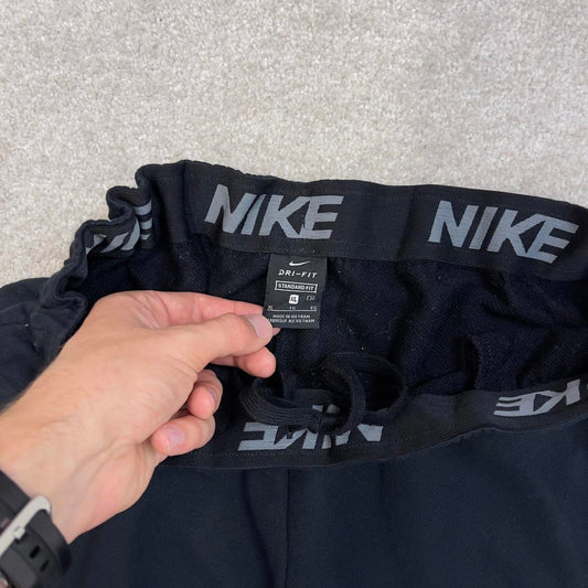 Loose Nike Trackies XL Black y2k 00s style Dri-Fit joggers print swoosh logo