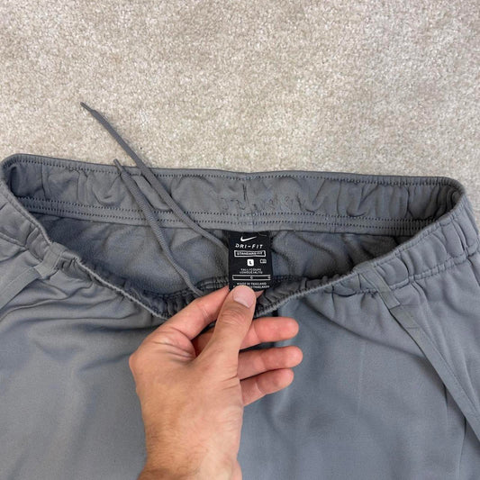 Nike Trackies Large Grey y2k 00s style loose leg Dri-Fit joggers print Swoosh logo