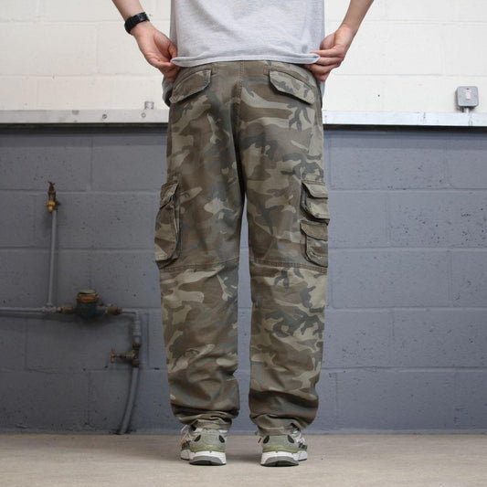 Camo Wrangler cargo pants W40L32 khaki forest camouflage straight y2k style cargo trousers