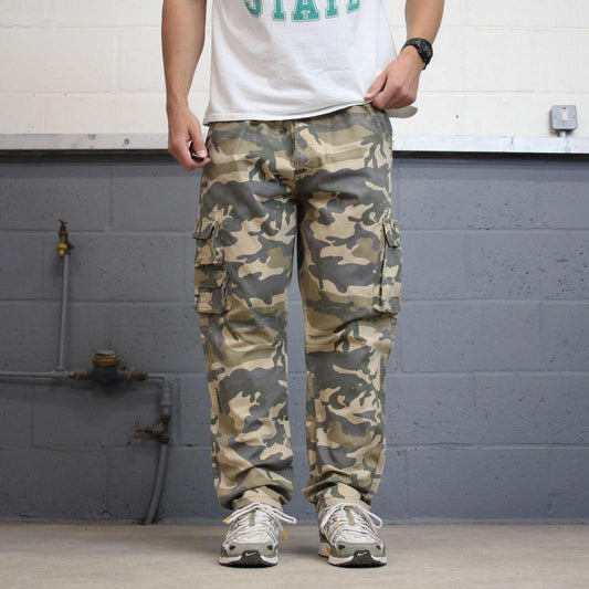 Camo Wrangler cargo pants W40L30 khaki forest camouflage straight y2k style cargo trousers