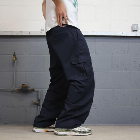Baggy Dickies cargo trousers W40L30 navy chino style skater cargo pants