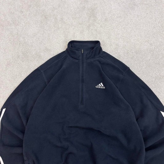 Navy Adidas technical fleece Large 1/4 zip pull over y2k autumn style lightweight zip up striped