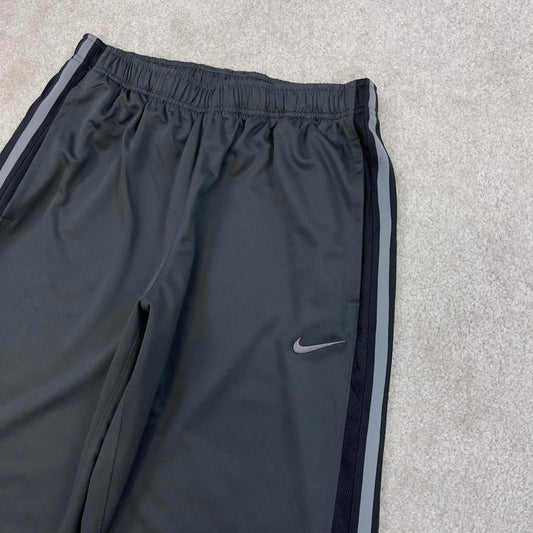 Baggy Nike Trackies Large Grey y2k 00s style loose wide leg joggers embroidered logo side stripe