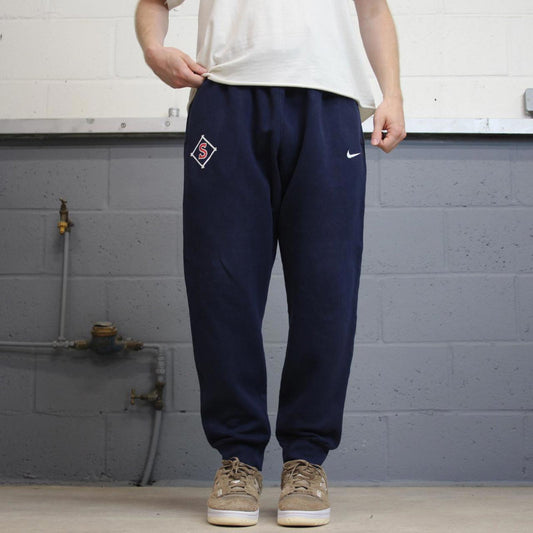Navy Nike joggers L y2k style sportswear track pants loose fit embroidered logo