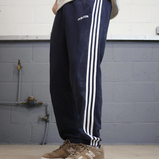 Vintage navy Adidas joggers M y2k style sportswear track pants side stripe design