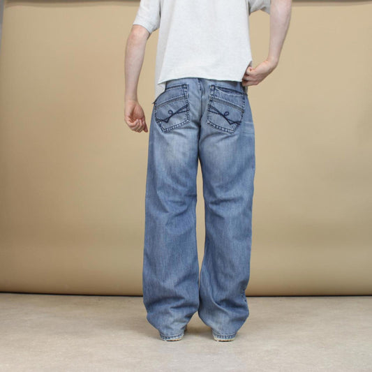 Blue Indigo 30 embroidered jeans W36 L31 loose denim skater style jeans