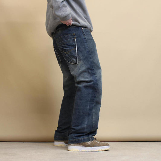 Blue X2 denim jeans W34L30 loose denim y2k skater jeans stitch design