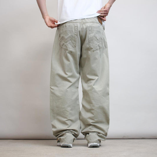 Mens baggy MOJeans jeans W38 L35 beige embroidered wide leg jeans