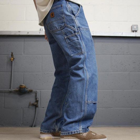 Blue Denim Carhartt double knee carpenter jeans W31L32 90s style thick denim loose leg cargos