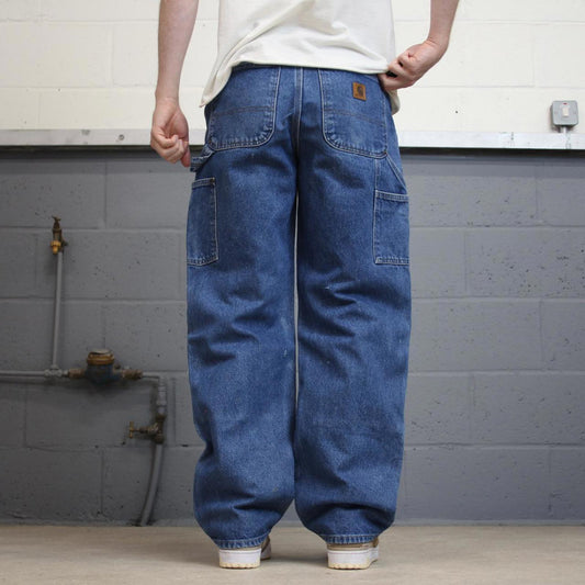 Baggy blue Carhartt double knee carpenter jeans W38L32 90s style thick denim wide leg cargos