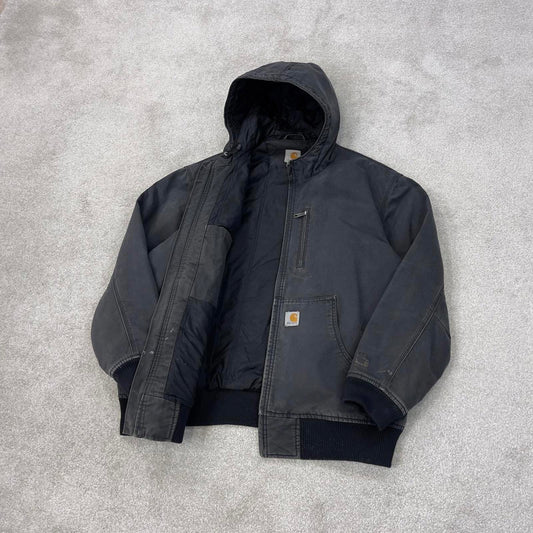 Charcoal grey Carhartt hooded active jacket XL duck canvas bomber